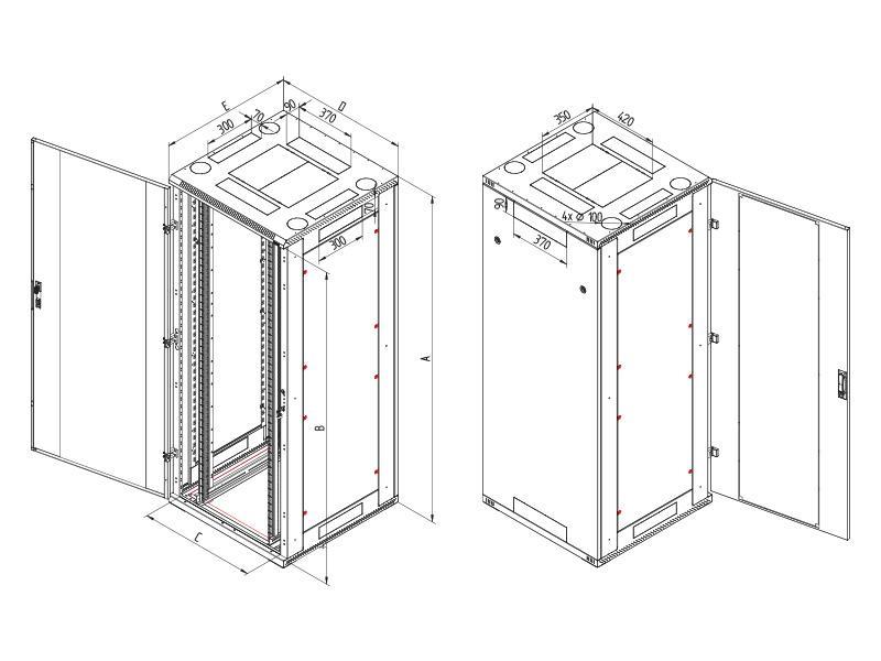 19" Standschrank 1200 kg 42HE/800x800 , Glastür