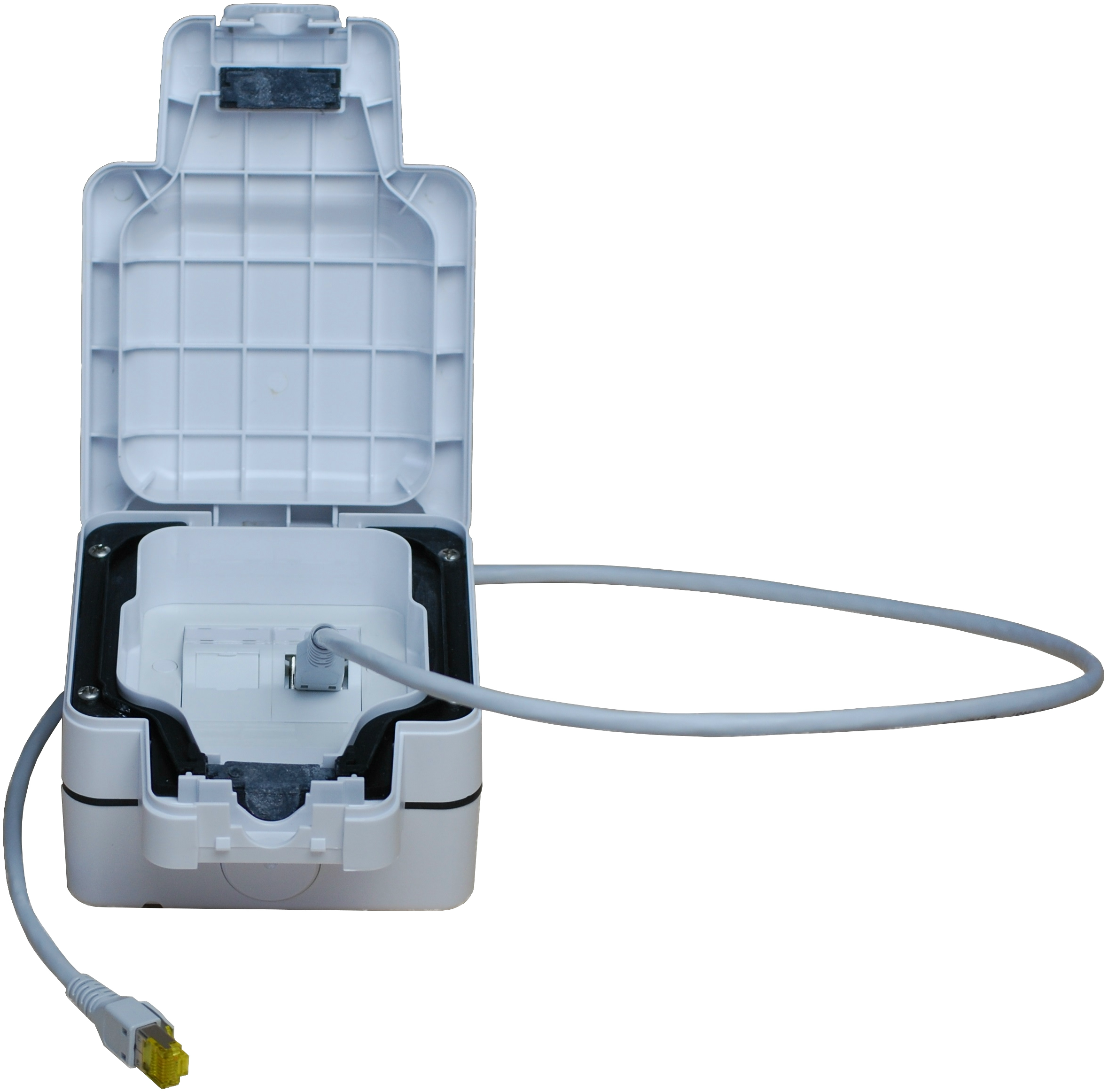 Die iv.sys IP66 Doppeldatendose mit Modultechnik Kat.6A. Die mitgelieferten Module sind Spezialwerkzeugfrei anschließbar für AWG27-AWG22 Kabel. Verwendung von Standard RJ45 Anschlusskabeln ohne Spezialstecker. Das Gehäuse ist Staub und Wasserdicht durch eingelegte Dichtungen im Gehäuse.