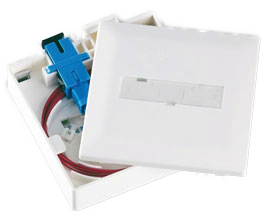 LWL-Anschlussdose mit 2 Ausbrüchen für SC simplex Kupplungen.