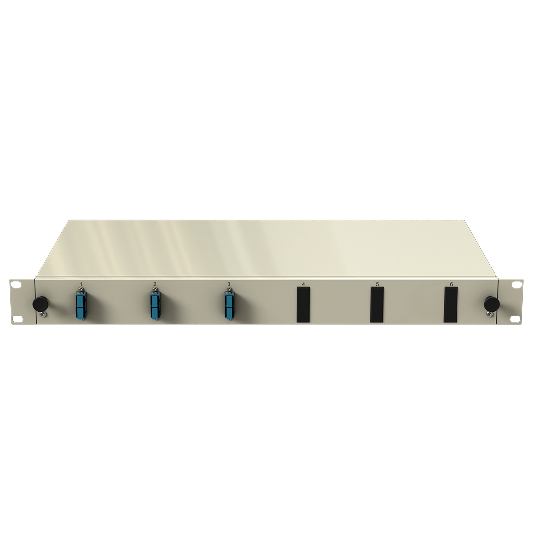 - Frontplatte: 19" (483mm) mit montierten SC DX Kupplungen