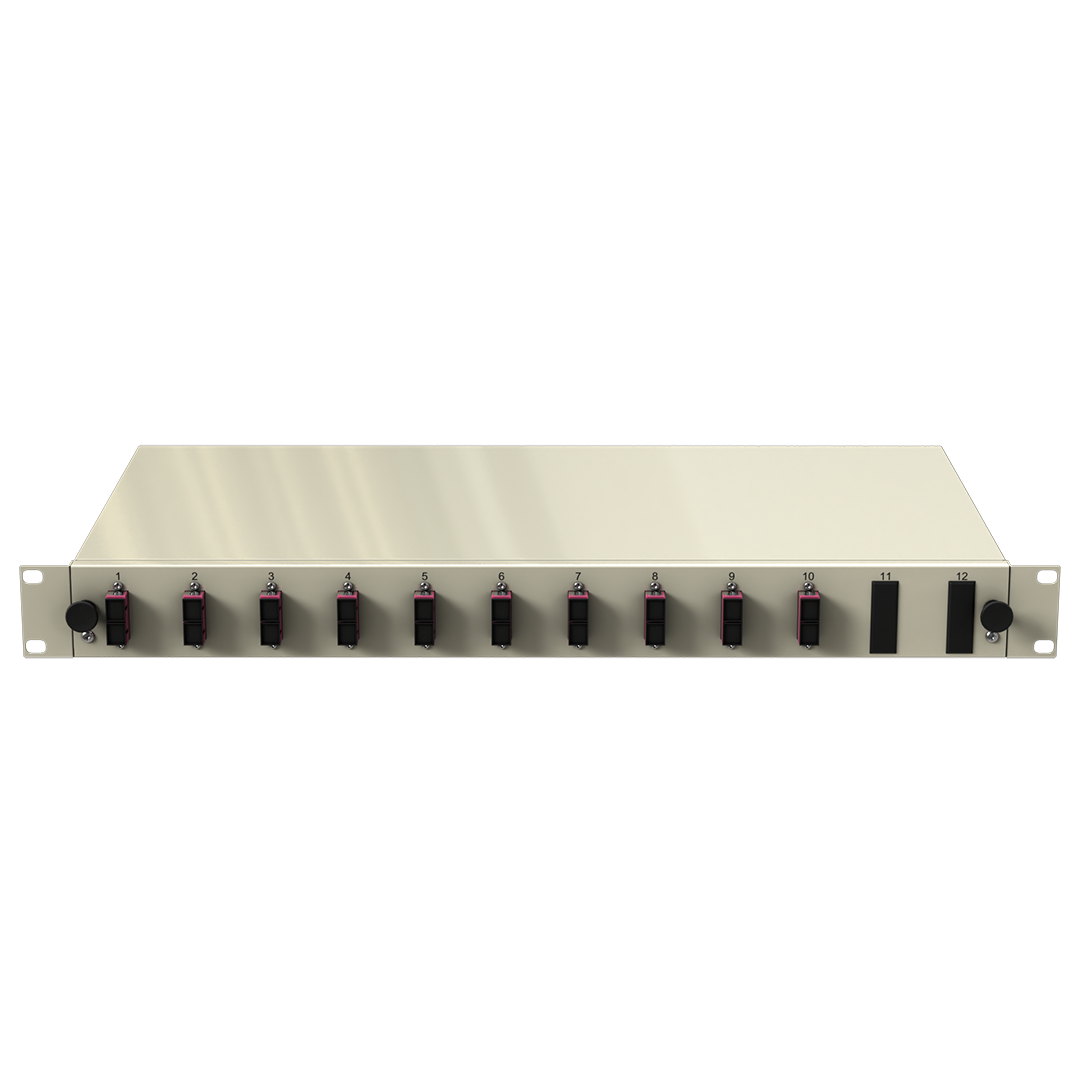 - Frontplatte: 19" (483mm) mit montierten SC duplex Kupplungen
