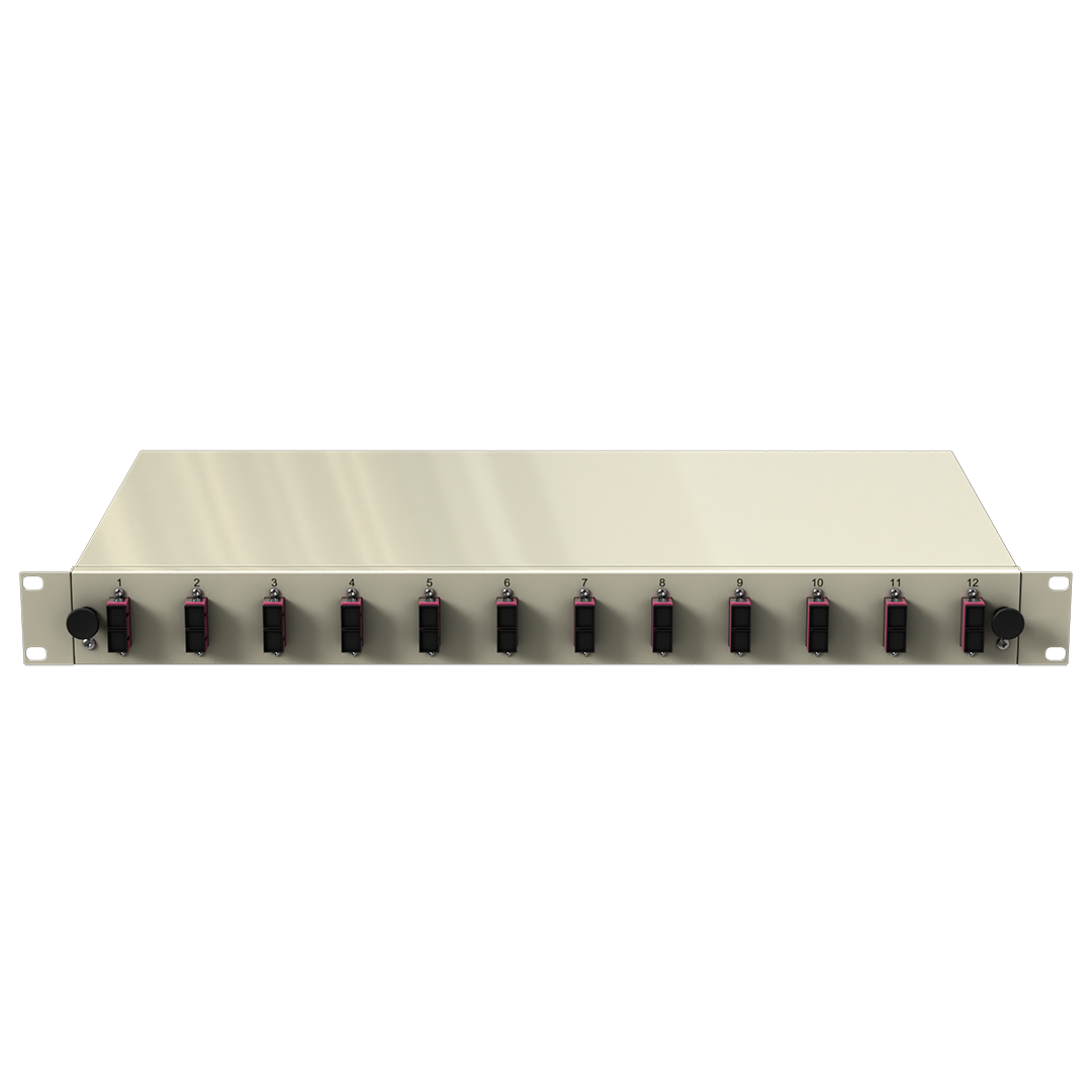 - Frontplatte: 19" (483mm) mit montierten SC duplex Kupplungen