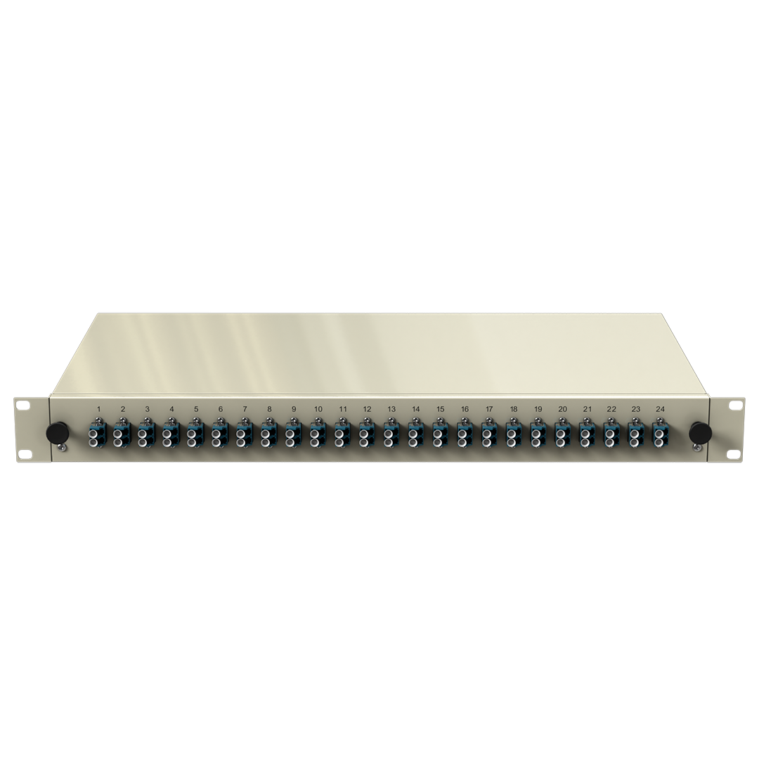 - Frontplatte: 19" (483mm) mit montierten LC DX Kupplungen