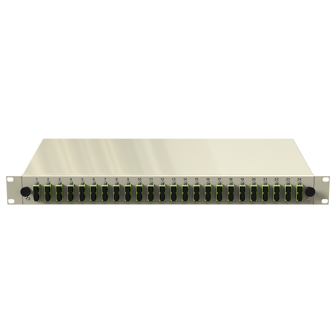 - Frontplatte: 19" (483mm) mit montierten SC DX Kupplungen