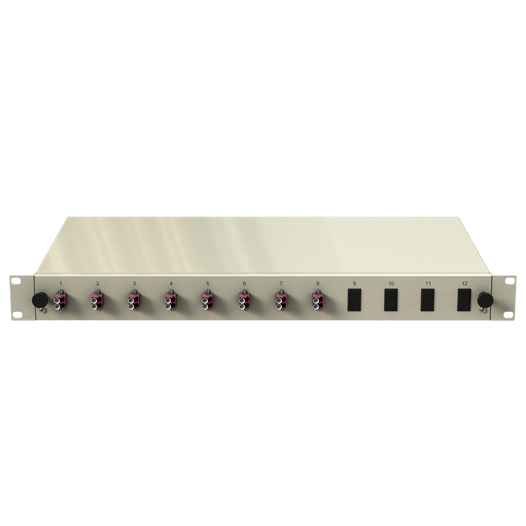 - Frontplatte: 19" (483mm) mit montierten LC duplex Kupplungen