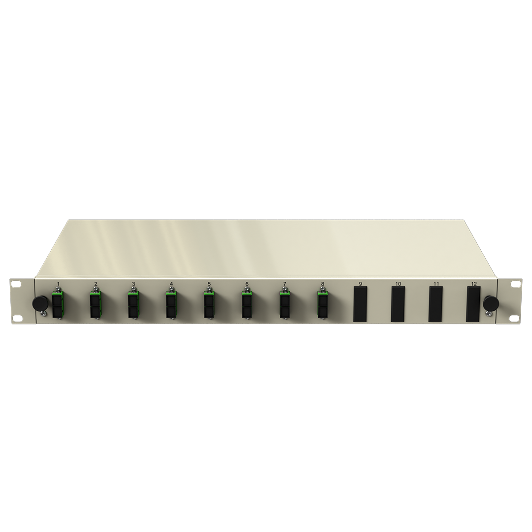 - Frontplatte: 19" (483mm) mit montierten E2000 simplex Kupplungen