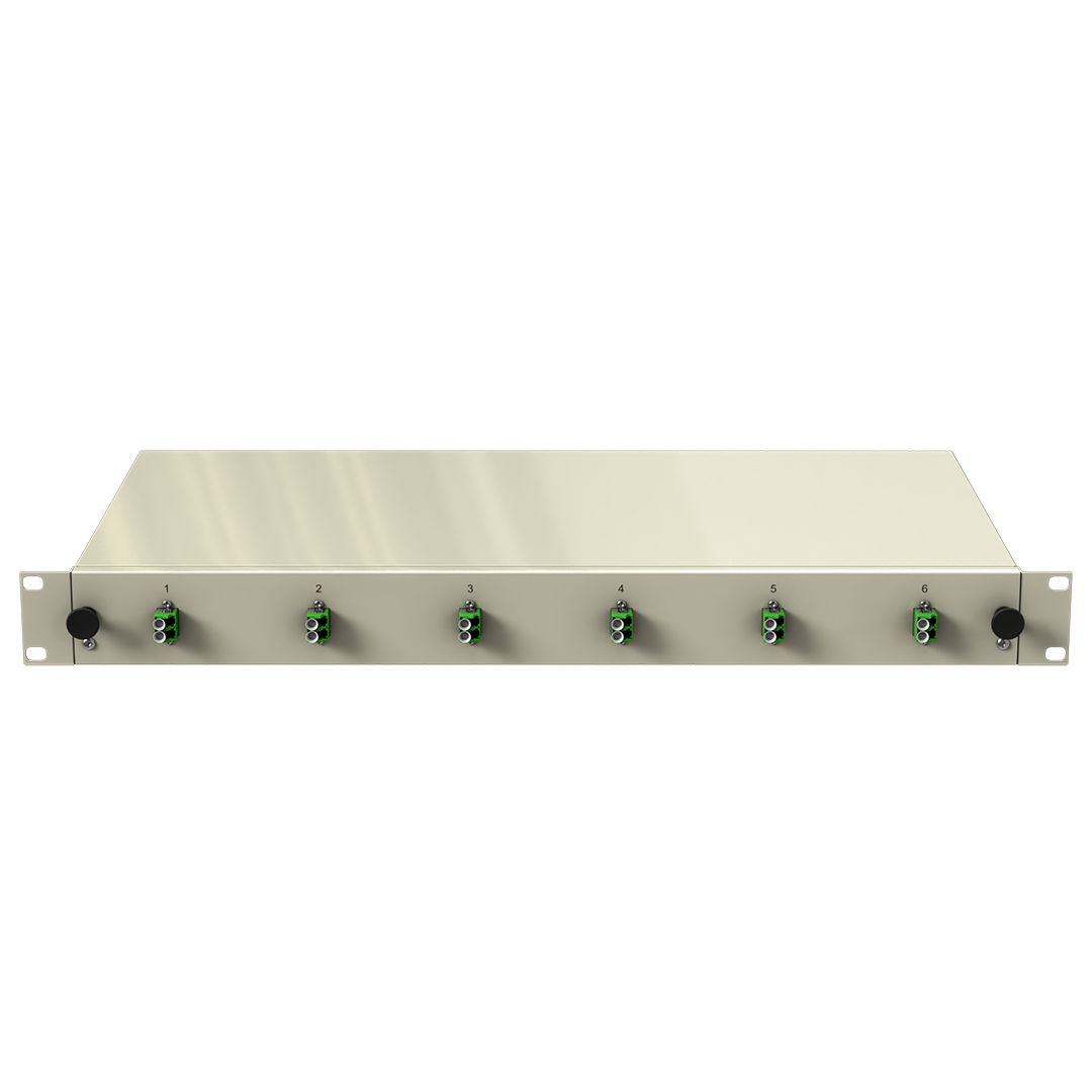 - Frontplatte: 19" (483mm) mit montierten LC duplex Kupplungen