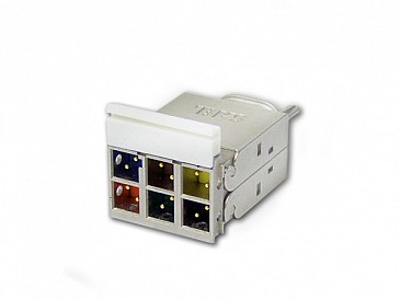 Modulare, wiederbeschaltbare, geschirmte 6-paarige Multimedia Buchse für Kategorie 8.2, 2.0 GHz Zur Übertragung von analogen und digitalen Sprach-, Bild- und Datensignalen bis 2.5 GHz Das einteilige Buchsenmodul wird sicher und schnell an das Installationskabel montiert
