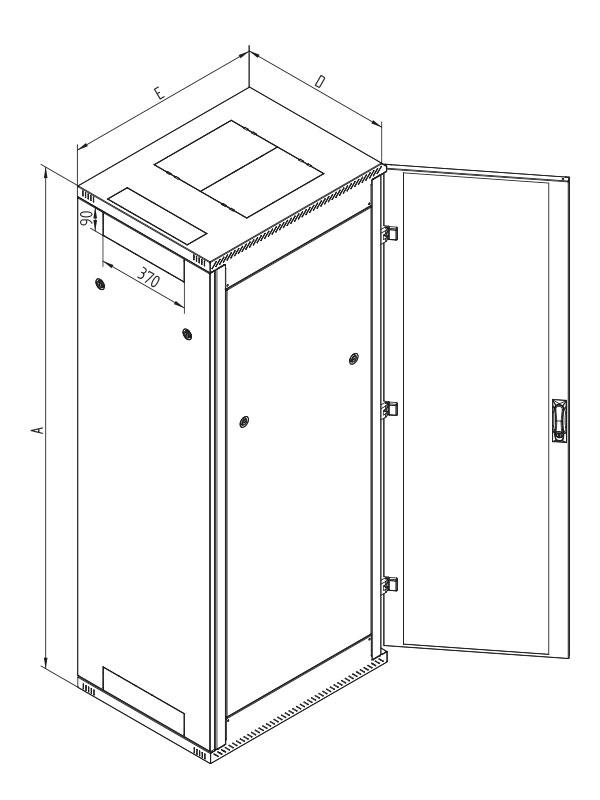 Geschweißter Standschrank für Belastung 800 kg, in Stahlblechausführung, IP 20. Luftschlitze seitlich im Dach- (Lüftungsdom) und Bodenteil. Verblendete Kabeldurchführungen und Montageplätze für Belüftungseinheit im Dach-und Bodenteil. Alle Teile zusammengeerdet. Sternpunkt vormontiert, zwei Paar (ab Schranktiefe 900 mm drei Paar) 19“ vertikale Montageschienen, verzinkt, verstellbar. Alle Höheneinheiten an den Montageschienen gekennzeichnet. Im Beipack: 16 St. Käfigmuttern mit Schrauben und Unterlegscheiben, 4 St Nivellierfüße , Bürstenleistensatz
