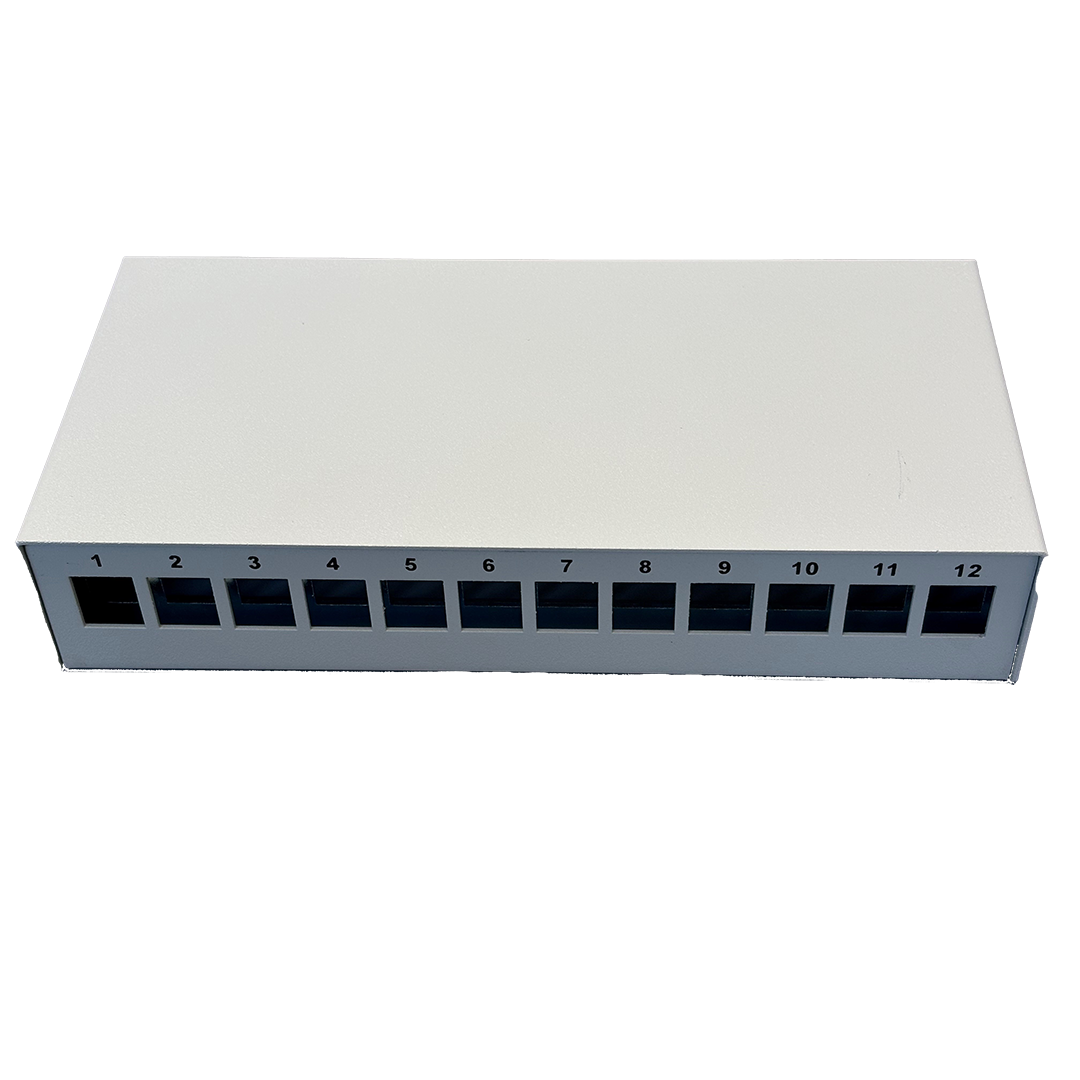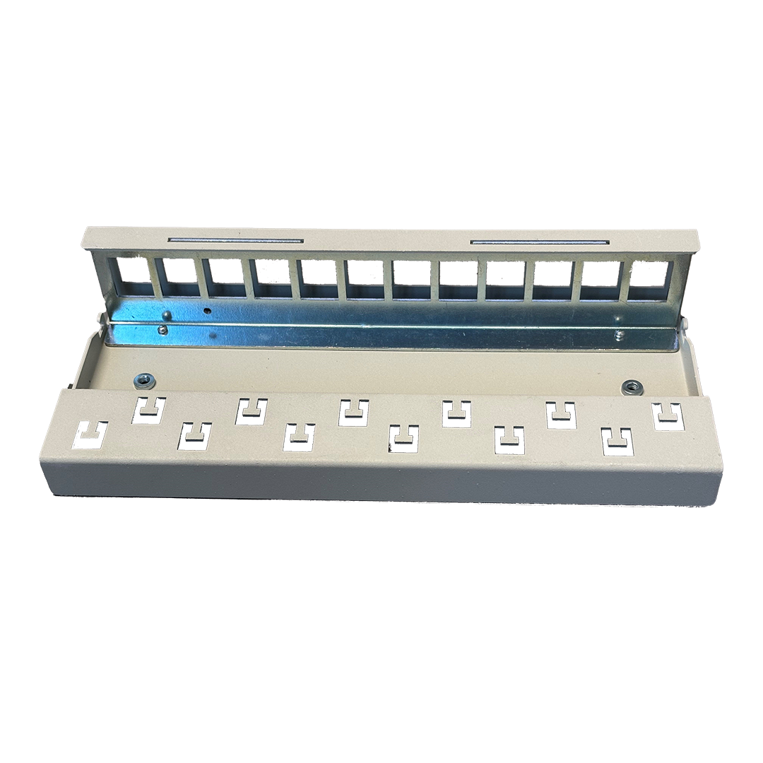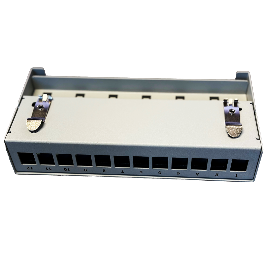 Stabiles Metallehäuse zur Aufnahme von 12 iv.sys Keystone Modulen. Das kompakte Gehäuse dient zum Aufbau von Sammelpunkten an Schreibtischen, in Zwischendecken oder in Unterflursystemen. Das Leergehäuse eignet sich ebenso zur Wandmontage oder als Hutschienengehäuse.